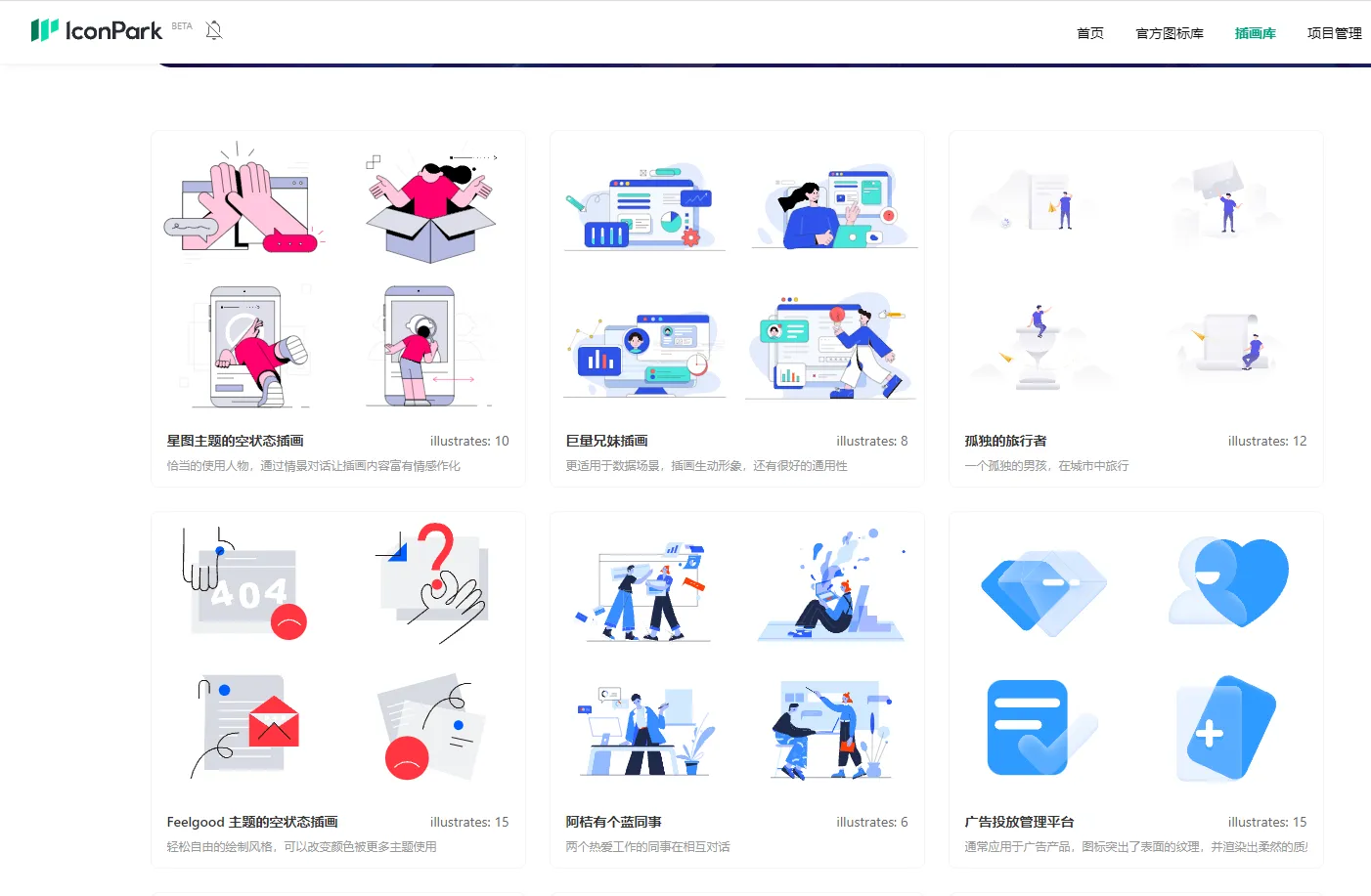 字节跳动团队维护的图标库,不仅图标可定制,可调节,且拥有丰富的插画库。官方文档
