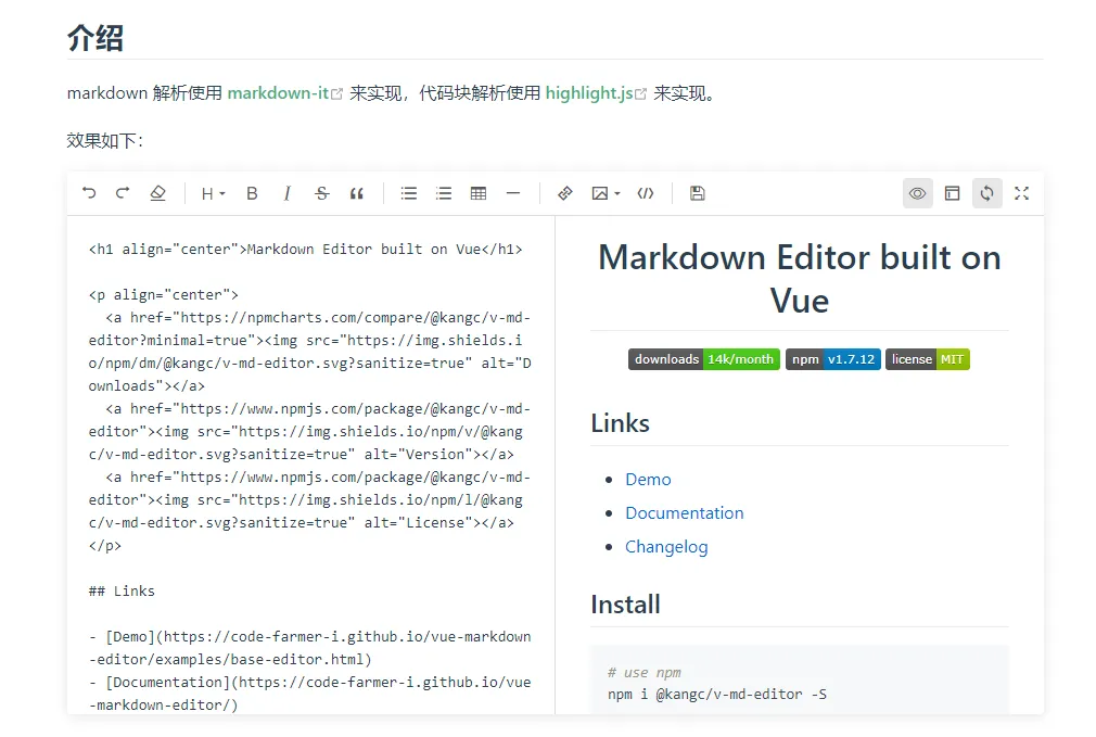 这是一个能够直接实现在网页上编辑,渲染markdown语言的组件,代码高亮,并且广泛支持插件和主题定制。官方文档