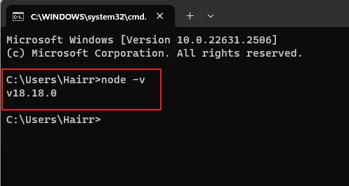 按下Win+R,输入cmd打开,向控制台输入node -v若如图所示成功输出版本号则环境安装成功。