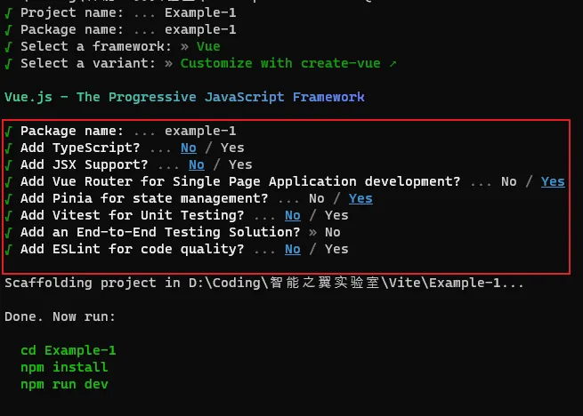 cd Example-1 #Example-1是我示例输入的项目名进入项目文件夹后,键入以下指令以安装项目必须依赖:
